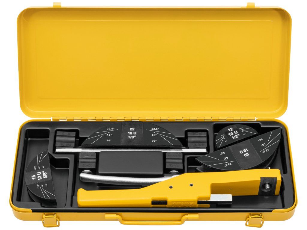 REMS SWING Set je profesionální ruční ohýbačka trubek na přesné ohýbání kovových i kompozitních trubek do úhlu 90 °.
