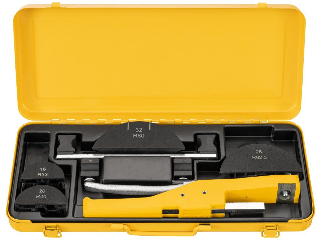 REMS SWING Set je profesionální ruční ohýbačka trubek na přesné ohýbání kovových i kompozitních trubek do úhlu 90 °.