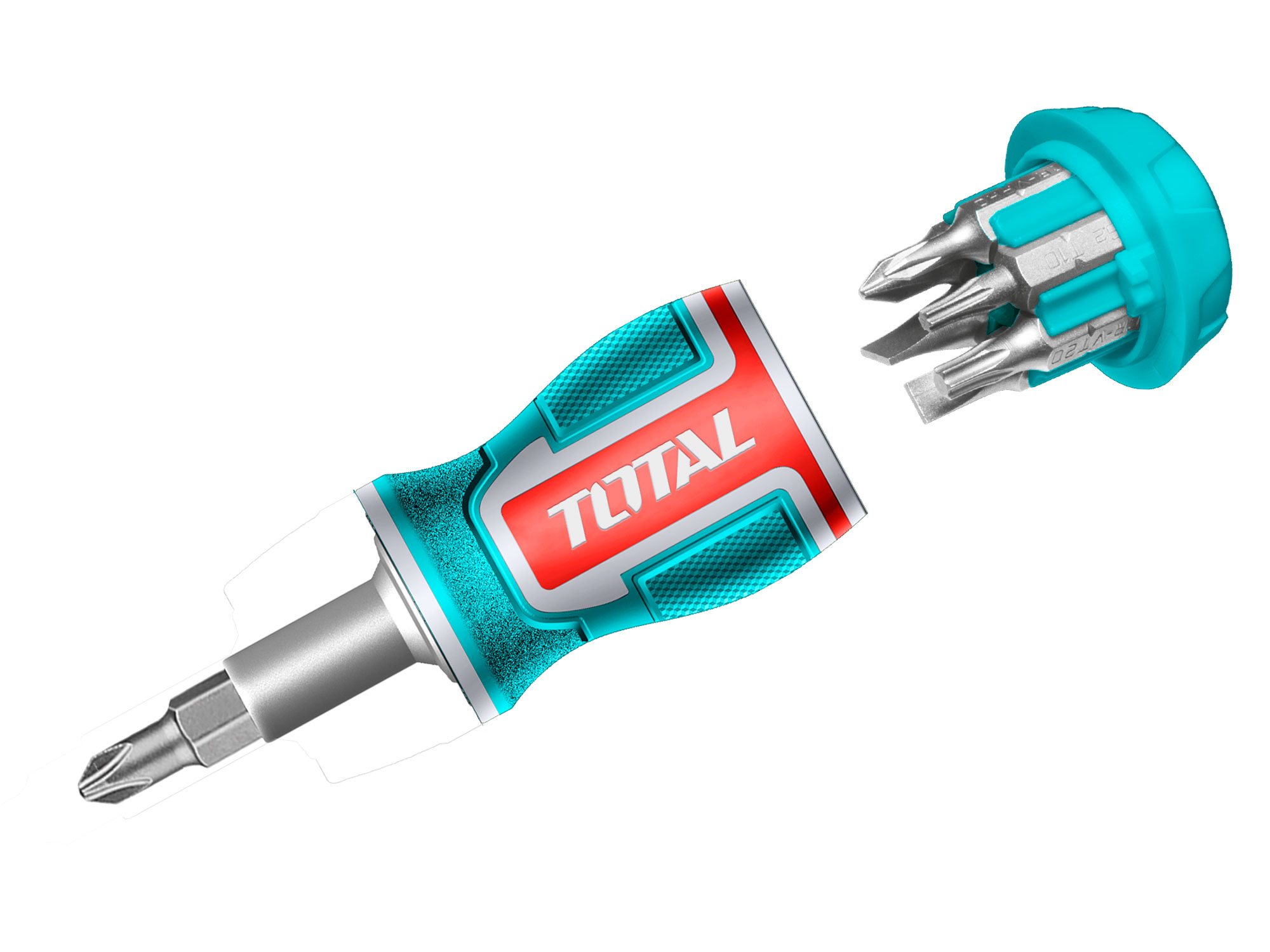 Sada šroubováků 8 IN 1 Stubby, materiál: Cr-V. Obsahuje: 1ks rukojeti, 7 ks 1/4"x25mm šroubovacích bitů velikosti: SL5, SL6, PH0, PH1, PH2, T10, T20.